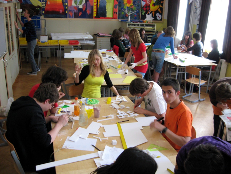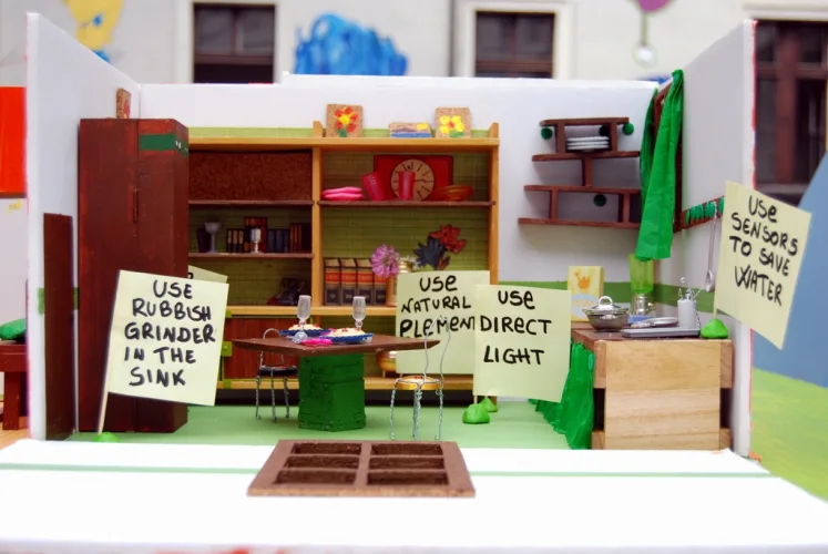 Izdelava posameznih sob makete Zelene hiše pri likovni umetnosti.