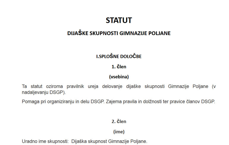 Dijaška skupnost Gimnazije Poljane pripravlja svoj statut, ki je objavljen tu. Svoje dopolnitve oziroma predloge lahko pošljete od srede, 10. 4., do petka, 12. 4, in sicer na naslov dijaska.skupnost.poljane@gmail.com Miha Meserko