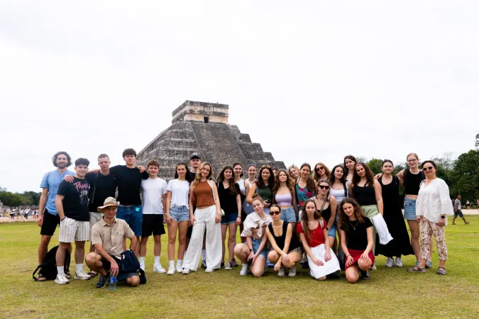 Takoj po razpisu za strokovno ekskurzijo po območju Yucatana nam je bil predstavljen izjemno zanimivo in barvito zastavljen program, ki naju je takoj prepričal v prijavo. Nato sva imela skoraj celo leto časa, da se izleta veseliva in sva bila zato nadvse navdušena, ko je končno prišel čas, da sedemo na letalo. 11-urni let se resda zdi precej dolg, a z gledanjem raznolike ponudbe filmov in s spancem tudi ta hitro mine. Ob izstopu iz letala v Cancunu nas je pozdravil večerni yucatanski zrak, ki nas je v trenutku ogrel. Sedli smo na moderen klimatiziran avtobus in najprej spoznali vodnico Edith in voznika Estebana, ki sta nas spremljala na večini izletov. Zaradi lakote po 24 urah poti smo se najprej ustavili na bencinski črpalki, kjer smo si lahko kupili mehiške prigrizke in si prvič ogledali cene v mehiških pesosih. Sledila je prijetna vožnja do hostla Candelaria, naše prve nastanitve v prikupnem mehiškem mestu Valladolid. Prva stvar, ki smo jo lahko opazili, so bile barve. Že sam hostel nas je očaral s paleto barv in nam omogočil doživljanje pravega mehiškega občutja. Barve so bile tudi tema tokratnega fotografskega natečaja, ki je značilen za naše španske ekskurzije. Navdušenje nad našo nastanitvijo se je nadaljevalo že ob zajtrku, ker nam je domačinka pripravila okusna jajčka s tipičnimi začimbami, kot je npr. koriander, in njihovim tradicionalnim črnim fižolom. Slednji naju je ne glede na naklonjenost spremljal do konca potovanja. Nato smo s počitniškim tempom začeli prvi pravi dan v Mehiki in se odpravili v cenote Zaci, ki je eden izmed mnogih naravnih vodnih rezervoarjev. Gre za naravne jame, napolnjene z obilico prijetno sveže vode, v katere so se nekdaj prihajali osvežit domačini. Danes pa so cenoteji še ena izmed mnogih turističnih atrakcij. Tako smo se tudi mi lahko osvežili in si zvišali raven adrenalina, saj smo v prijetno vodo skočili s kar desetmetrske skalnate stene. Popoldne pa smo se sprehodili po kolonialnem mestu Valladolid, si ogledali znamenitosti in prvič v rokah držali mehiške pesose, ki smo jih zamenjali za ameriške dolarje. Menjava je potekala v lokalni banki, kjer so na najino začudenje hkrati prodajali tudi pohištvo in motocikle. Z žepi, polnimi mnogo novega in barvitega denarja, smo razglabljali o tipu arhitekture, ki je najbolj podoben južnošpanskemu, saj je bilo mesto ob prihodu Evropejcev pod njihovim vplivom. Kasneje smo na večerji lahko zopet okusili tradicionalno hrano. V nasprotju s pričakovanji so bile tortilje zelo majhne in so služile le kot priloga k mesu. Poskusili smo tudi prave pikantne omake, ki so kar konkretno močnejše od naših. Kitajski zid, Petra, Machu Picchu, Kolosej, Kip Jezus Kristusa, Taj Mahal in? Chitzen Itza. Seveda smo si med vsemi doživetji ogledali tudi enega izmed sedmih čudes sveta. Ko smo prispeli na Chitzen Itzo, nas je tam skozi zgodovino majevske kulture, vključno s templji, igrami z žogo in načinom življenja popeljal Abel. Že Abel sam je bil ena izmed zanimivosti na dnevnem sporedu, zaradi svoje karizme in predvsem zaradi neverjetno tekoče angleščine, ki nas je brez izjeme preprosto navdušila. V prostem času sva prvič preizkusila barantanje, saj cene na stojnicah navadno niso postavljene. V prvem poskusu seveda ni šlo brez zapletov, čemur je sledilo veliko smeha. Je pa bilo to nedvomno super ogrevanje za kasnejše poskuse barantanja. Po Chitzen Itzi, ko smo bili že globoko v majevskem duhu, smo obiskali še majevsko šolo in učence, stare približno naših let, ter imeli z njimi več prikupnih interakcij. Te so bile morda malo nerodne, saj se oni, tako kot mi, španščine učijo le v šoli, kot dodatek k svoji materni majevščini. Sprejeli in pozdravili so nas z velikim navdušenjem in pripravljenimi točkami, skozi katere smo lahko spoznali njihovo kulturo. Prevzele so nas izrazite barve na njihovih narodnih nošah ter telesne poslikave, ki smo jih imeli možnost videti ob predstavitvi tradicionalnega plesa. Najino pozornost pa je ujela tudi zgradba, ki je zelo različna našim srednjeevropskim standardom. Izmenjali smo si v naprej pripravljena darilca, ki v neki luči predstavljajo naše ljudstvo, in se malo podružili. Učili so nas osnovne korake majevskega plesa, oziroma natančneje, poskusili so nas učiti. Smehu ni bilo konca, tudi mi sami smo jim pokazali osnove polke, v kateri so se tudi sami želeli preizkusiti. Nepozabna izkušnja! V celoti prevzeti od pravkar doživetega smo se napotili v še en znameniti cenote Oxmán, kjer smo tokrat s pomočjo trapeza praktično leteli v vodo. Zvečer pa smo se dobili pred nekdanjim samostanom in si tam ogledali zelo lepo predstavo z lučmi. Naslednji dan si pod nobenim pogojem nismo smeli privoščiti prazne kamere ali telefona, saj je sledilo ogromno fotografiranja. Prišli smo na znamenite soline Las Coloradas, in kot je bilo napovedano, takoj začeli fotografirati, saj nas je očaral pogled na rožnato vodno maso v kombinaciji z belo peno in modrim nebom. Kot že ime pove, so soline obarvane, razlog pa tiči v posebni sorti rožnatih rakcev v vodi. Sprehajali smo se okoli solin in pri fotografiranju postali precej kreativni. Opazili smo tudi plamence, a so brez pomoči daljnogleda izgledali bolj kot pike na obzorju. Izlet smo nadaljevali z divjo plovbo po reki Lagartos. Za popestritev že tako zabavne vožnje so poskrbele številne živali, kot npr. krokodili, pelikani in kormorani. Glavna atrakcija so ostali krokodili, katere nam je uspelo slikati s precejšnje bližine. Doživetje na Riu Lagartos se je zaključilo s hojo po ugrezajočih tleh na rečnem otoku, kjer smo se kot petletni otroci namazali z domnevno zdravilnim blatom, pogumnejši kar po celem telesu. Sledilo je morsko kosilo, odmik od piščančjega k ribjemu mesu pa nama je obema precej ugajal. Pri kosilu niso manjkale niti male tortilje, kar je dokaz, da se jih zares jé povsod. Po obedu smo se prvič osvežili v morju, midva pa s