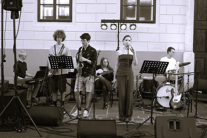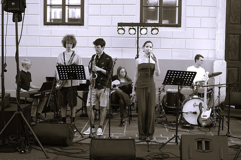 V torek, 11. junija, je poljanski Hišni bend s koncertom v dvorani zaokrožil delo zadnjega šolskega leta. Zasedba, okrepljena s precej novimi člani, je razveselila poslušalstvo z izborom znamenitih jazz standardov od Gershwina do Bruebecka, našel pa se je tudi prostor za priredbo kakšne pesmi iz zlatih časov slovenske popevke. Jon Šef, ki je izstopal z navdahnjenim soliranjem na klaviaturah, je duša benda. Uspelo mu je smiselno povezati mlade glasbenike na različnih stopnjah ustvarjalne poti, skupaj pa so, ob domiselnem prirejanju in aranžiranju, izpeljali precej kvaliteten nastop – sploh če upoštevamo, da jih je večina šele v prvem in drugem letniku. Človek bi rekel, da se na Poljanah – ki so vse bolj glasbena šola – ni bati za prihodnost jazza.