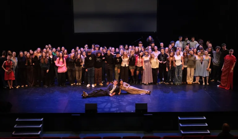 Leto je znova naokrog in tik pred počitnicami so se v Dvorani Španskih borcev odvile kar štiri ponovitve težko pričakovanega božično-novoletnega spektakla Gimnazije Poljane, bolj znanega pod kratico BNK. Dvorano so že ob prihodu obiskovalcev napolnili praznično vzdušje, pričakovanje in prijetno vznemirjenje, ki vedno spremljajo ta tradicionalni šolski dogodek. Trdo delo jesenskih mesecev se je na odru bogato obrestovalo. Dijaki in učitelji so skozi 22 raznolikih nastopov pokazali svojo ustvarjalnost in predanost, ki se odražata v predanih vajah po pouku. Program je bil pester in dinamičen: plesne, pevske in instrumentalne točke so se prelivale druga v drugo ter občinstvo vseskozi držale v pozornosti. Na odru so zazveneli različni jeziki, od ruščine do nemščine, in zaigrali številni inštrumenti, med njimi tudi skoraj 200 let star čelo. Zasedba se je raztezala od solističnih točk do dinamičnih razrednih nastopov, razpon intenzivnosti pa od nežnega baleta do energičnega “screaming rapa”. Prav ta raznolikost je večeru dala poseben pečat in poskrbela, da ni nihče ostal ravnodušen. To sta zagotovila tudi napovedovalca France in Tisa, ki sta predstavo izvrstno povezala. Pohvale si zaslužijo tudi dijaki in profesorji, ki sestavljajo organizacijsko ekipo BNK-ja, ter vsi ostali, ki so med dogodkom delali iz ozadja. Vsi vpleteni so pripomogli k temu, da je božično-novoletni koncert tudi letos dokazal, da Gimnazija Poljane ni le prostor učenja, temveč tudi kraj skupnega ustvarjanja in povezovanja, kar je posebno lepo videti v času veselega decembra. Ob zadnjih aplavzih in nasmejanih obrazih je bil namen dogodka lepo povzet - skupni trenutki so tisti, ki dajo praznikom pravi pomen. Vesel božič in srečno novo leto vsem! Besedilo Maja Žunič, 3.C, fotografije Hana Burnik, 2.G