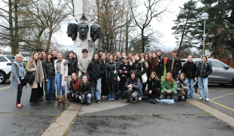 20. marca 2025 so dijakinje 2.a (Pia, Janja, Lara F., Livija, Lara K., Špela, Ela, Gaja, Iva, Laura, Lizzie in Zala) na Gimnaziji Nova Gorica predstavile francoskega kralja Franca Prvega in obdobje renesanse. Rdeča nit celotne prireditve, kjer so se predstavili francosko učeči se gimnazijci iz vse Slovenije, so bili francoski kralji in kraljice. Zato smo dan zaključili z obiskom Kostanjevice in ogledom knjižnice ter zadnjega počivališča kralja Karla X. in njegovih najbližjih. Besedilo: Petra Hrovat Hristovski, prof.