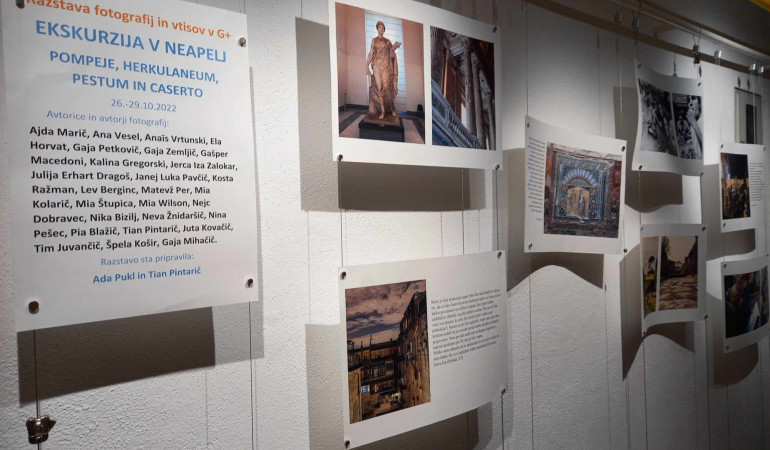 V G+ si lahko ogledate razstavo vizualnih in pisnih vtisov z oktobrske strokovne ekskurzije dijakinj in dijakov klasične gimnazije: NEAPELJ, HERKULANEUM, POMPEJI, PESTUM. Fotografije in razmišljanja odzvanjajo klasično antiko, pa tudi živost sodobnega Neaplja. Razstavo sta pripravila Ada Pukl in Tian Pintarič.
