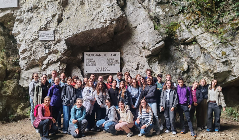 Reportaža po izvedenem tednu mobilnosti v okviru Erasmus+ projekta From Roots To Routes Osem dijakov in profesorica Gimnazije Poljane smo se 21. septembra ob 15.30 zbrali na glavni avtobusni postaji, da bi končno sprejeli španske sovrstnike, ki smo jih že cel teden nestrpno pričakovali. Vzdušje je bilo evforično - mahali smo si, se objemali in si oddahnili, da je pot tekla gladko. Španci so bili sicer malo presenečeni, saj smo jim teden prej oglaševali Ljubljano kot deželo neskončnega dežja, prispeli pa so sredi najmočnejšega sonca. Vendar, brez skrbi, saj je teden, ki je sledil, poskrbel za to, da so res doživeli tudi tradicionalni ljubljanski dež in meglo. Doma so najprej razpakirali bunde, kratke hlače, kopalke in šale (glede oblačil jim zaradi muhastega vremena nismo znali svetovati, zato so prinesli kar vse) nato pa smo kar brez sieste skočili v akcijo. Pred sabo smo imeli še cel dan, ki ga je večina izkoristilia za ogled domačega mesta. Medtem se je druga polovica slovenskih dijakov pripravljala na prihod čeških dijakov, ki so naše vrste okrepili v nedeljo zvečer. Vsi so bili navdušeni, da so se spet po dolgem času videli. Čehi so bili predvsem utrujeni, saj so v Ljubljano prispeli z avtobusom šele ob 18:35 (fashionably late). Znani obrazi so s sabo pripeljali vihar spominov na aprilsko druženje v sklopu projekta From Roots To Routes na Češkem. Po prihodu domov in seznanitvi z našimi družinami smo jim, da bi razblinili v začetku še prisotno tremo, postregli z večerjo, polno tipičnih slovenskih jedi: jajčne žličnike v goveji juhi, čufti s praženim krompirjem, kot priloga zelena (nesladkana!) solata. Sladice po večerji so se zelo razlikovale: od jabolčnih zavitkov, potice in seveda štrukljev. Sledil je prijeten večer, igrali smo družabne igre, se pogovarjali, izmenjavali zgodbe, se spoznavali ... Naslednji dan smo izkoristili za raziskovanje severa Slovenije. Špance smo odpeljali na Bled, v Planico, Kranjsko Goro, Tolminska korita in še druge čudovite kraje, kjer jih je očarala naša narava. Čeprav je vikend žal prehitro minil, nas je čakal razburljiv teden aktivnosti znotraj Erasmus+ projekta From Roots To Routes. Začetek tedna je bil namenjen spoznavanju. Led smo prebili z zabavno igro, ki je prinesla kar nekaj smeha. Sledil je intenzivni tečaj slovenščine pod vodstvom spretnega lingvističnega mojstra, profesorja MarkaTrobevška. Goste smo učili osnovnih fraz, ki bi jim prišle prav v vsakodnevnih situacijah – še posebej, če bi se nam slučajno kje izgubili. Najbolj koristne so se nam zdele: »Vaš klobuk je res grd. Brez heca.«, »Ej, folk, kva dugaja?«, »Porka svet!« in »Šprical sem mato.«. Zabavali smo se, ko so Španci skušali izgovoriti »pešci počistite cestišče« in se začudili, da je šlo Čehom to tako lahko z jezika. Po poučnem jezikovnem tečaju smo izvedli kviz o Sloveniji. Če smo čisto iskreni, smo tudi mi, domači dijaki, izvedeli kar nekaj novih dejstev o lastni državi. Nato smo se podali na dve uri »običajnega« pouka, kjer smo gostom pokazali, da Gimnazija Poljane ni samo lepa šola, ampak tudi prostor trdega dela. Pouku so se pridružili tudi njihovi učitelji, ki so kasneje z nami navdušeno delili izkušnje. Med odmorom so bili nekateri gostje deležni šolske malice, drugi so se prigrizek kupili v eni od bližnjih trgovin. Pri tem smo se pogovarjali o razlikah v ceni, inflaciji in o slovenski ekonomiji. Po malici smo za Čehe in Špance pripravili predstavitev procesa oblikovanja učnih poti po naravni in kulturni dediščini Ljubljane, ki so bile na sporedu v torek in sredo. Naši gostje so bili povabljeni na eno od tradicionalnih poljanskih dijaških prireditev, to je bil krst prvošolcev. Nato smo nekateri organizirali sproščujoč piknik v Tivoliju in se sproščeno družili ob igri in plesu (španski dijaki so nas želeli naučiti nekaj korakov seviliane). Drugi so popoldne preživeli v naravi ali pa v kuhinji, kjer so se preizkusili v peki tradicionalnih španskih sladic. Češki dijaki so si medtem privoščili sprehod po Ljubljani in obiskali nekaj trgovin, kot se za turiste spodobi. Naslednji dan smo se razdelili v mednarodno pisane skupine in se kljub dežju podali na terensko delo s ciljem, da oblikujemo novo učno pot. To je vključevalo kar nekaj hoje in obiskov kavarn, ki so služile kot začasne pisarne. Sledil je skupen ogled pravkar ustvarjene učne poti. Po končanem dnevu smo se ponovno razpršili po Ljubljani in kupovali spominke, s španskimi učitelji pa smo preizkušali štruklje, ki so jim bili tako všeč, da so še cel teden sanjali o njih. Zvečer smo obiskali Metelkovo, sledil je degustacijski sprehod po Ljubljani. Sreda je prinesla otvoritev nove kolesarske servisne postaje ob Gimnaziji Poljane in delavnico popravljanja koles, na kateri so nam pokazali, kako pregledati in skrbeti za kolo. Nato smo se podali na kolesarski poligon, takega kot na kolesarskem izpitu, ki ga je za nas postavil dobrodušni profesor Jan Jereb. Nekateri Španci so se naučili kolesariti šele teden prej, medtem ko so Čehi pokazali svoje vrhunske kolesarske veščine. V nadaljevanju pa smo jim podrobneje razkazali šolski fitnes in G+. Nato smo se razdelili v štiri skupine in začeli s kolesarsko učno potjo, ki smo jo slovenski dijaki predhodno oblikovali na pripravljalnih srečanjih. Prekolesarili smo neverjetnih sedemnajst kilometrov in gostom predstavili dvanajst točk. Dan smo zaključili z obiskom mehiške restavracije, burekom in s sproščenim nakupovanjem za petkovo žurko, medtem ko so se Čehi odpravili na Bled, kjer so si, kot se spodobi, privoščili kremšnito in naredili nekaj skupinskih fotografij. V četrtek smo se vsi zbudili popolnoma izčrpani, vreme pa je bilo tudi razpoloženju primerno. Do tega dne je bilo zgodnje zbujanje, še posebej s Španci, zanimiva izkušnja, tokrat pa nas je po napornem tednu že ob 7:45 pred šolo čakal avtobus. Med vožn