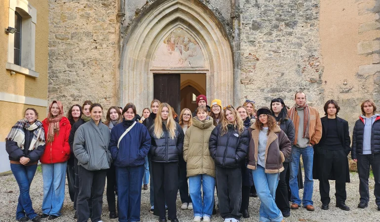 V soboto, 30. novembra 2024, so dijaki, ki se pripravljajo na maturo iz umetnostne zgodovine obiskali srednjeveške samostane na Dolenjskem (Stična, Pleterje, Kostanjevica). Ogledali so si ogledali zbirko halštatske umetnosti v Novem mestu, dela slovenskih ekspresionističnih umetnikov v Kostanjevici in pobliže spoznali vsebino poslikave viteške dvorane v Brežicah. Ob tem so prisluhnili še koncertu slovenskih učiteljev citranja. Dan je bil poln doživetij in umetniških vtisov. Foto: Mia Štupica