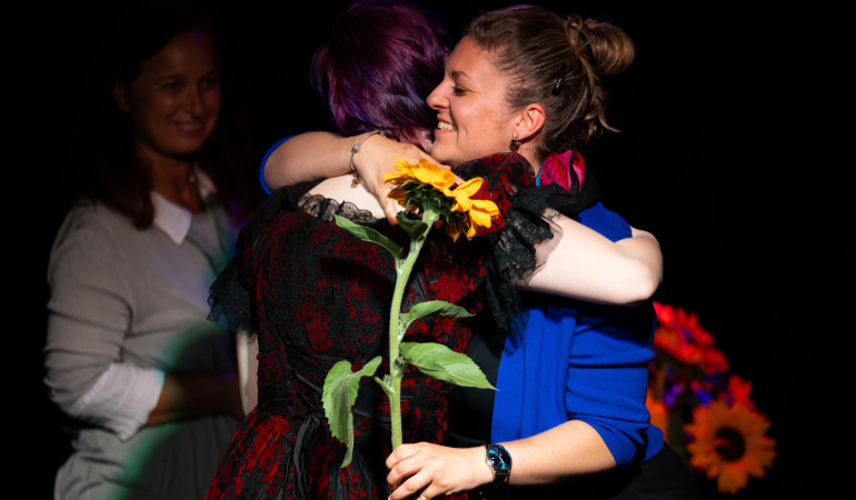 Dijakinje in dijaki Poljanskega odra 2 so v petek, 17. maja, nastopili na Vizijah, to je na Festivalu mladinske kulture 2024 v Novi Gorici. Po lanskoletnem uspehu predstave NE BO (vizionarju za najboljšo predstavo v celoti in vizionarju za igro Brine Rakun) je letošnja predstava Zadnja večerja ali perutničke in 13 avtorskih prizorov pod mentorstvom Maše Pelko in Timona Šturbeja tudi osvojila vizionarja za najboljšo predstavo v celoti. V aprilu se je predstava uvrstila na Festival dijaške ustvarjalnosti Transgeneracije v Cankarjevem domu. Prejela je priznanje za izjemno inovativen pristop. Za oba izjemna dosežka vsem ustvarjalcem iskreno čestitamo in kličemo: Bravo, Poljanski oder! Fotografije: Jože Maček, Vizije 2024, JSKD.
