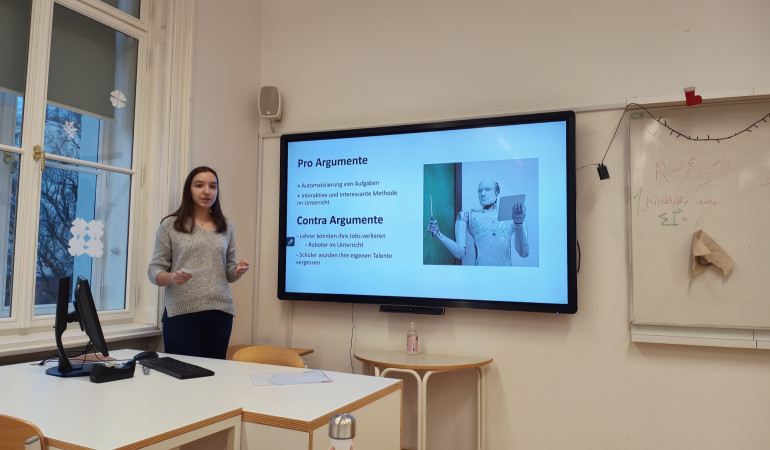 V ponedeljek 8. 1. in v torek 9. 1. 2024 so na šoli potekali ustni izpiti nemške jezikovne diplome DSD II na stopnji B2-C1. Dijaki so pripravili zanimive predstavitve in tričlanska komisija je z navdušenjem poslušala, kar so povedali. Vsi dijaki so bili na ustnem delu izpita uspešni. 19 dijakov je ustni izpit opravilo na stopnji C1, 2 pa na stopnji B1. Vsem iskreno čestitamo. Besedilo: koordinatorica DSD Maša Klopčič, prof.