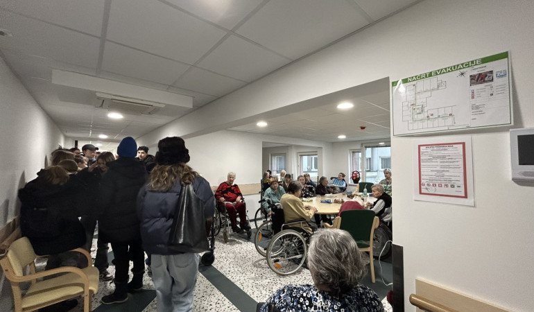 V petek, 22.12.2023, smo dijakinje in dijaki 2.E z razrednikom Francijem Jakličem obiskali Dom starejših občanov Poljane. Najprej nas je sprejela timska sestra Nina in nam razkazala dom, nato pa smo se razdelili in obiskali prebivalce doma v njihovih sobah ter skupnih prostorih. Zaželeli smo jim vesele praznike, jim dali domače piškote in izdelane voščilnice. Z njimi smo se pogovarjali, igrali karte in z nekaterimi celo peli. Povedali so nam mnogo zgodb iz svojega življenja in lahko rečemo, da so bili našega obiska zelo veseli. Prav tako smo bili njihove prijaznosti in gostoljublja veseli tudi mi. Upamo, da smo s svojim obiskom polepšali dan čim več prebivalcem doma in da so vsi imeli lepe praznike. Besedilo in fotografije: Pika Črnič, 2.E