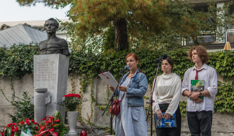 13. oktobra 2023 smo se na Ulici talcev ponovno zbrali pred spomenikom 24 talcev, ki so se med 2. svetovno vojno žrtvovali za to, da danes lahko živimo v svobodi in uporabljamo naš - slovenski - jezik. Bili so žrtve mučenja, gladu, stenic, ledenih besed … Ker tudi danes naša življenja pogosto vodi puhla in prazna beseda, je bila celotna prireditev prepuščena stihom, saj je pesem močno sporočilno sredstvo, za katero ni ne časovnih in ne prostorskih pregrad. Da se je to slišalo daleč in še dlje ter da je prireditev zaživela v vsej svoji mogočnosti, so poskrbeli Kvintet trobil Slovenske policije, Častna straža Slovenske vojske, praporščaki Združenja borcev, Partizanski pevski zbor, dijaka Gimnazije Poljane, Ema Erna Weber in Luka More, slavnostna govorca, župan Zoran Janković in predsednik Združenja borcev za vrednote NOB Ljubljana Center, Mihael Grobelnik. Nad vsem sem bedela pa kar sama, tako kot že 27 let poprej. Besedilo: Mateja Pandel, prof. slovenščine, fotografije: Jakob Majdič, 2.A