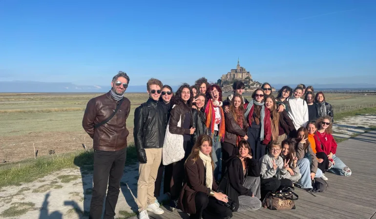 Reportaža po prvem delu izmenjave za 3.A v Franciji V petek 10. oktobra zvečer smo se učenci 3. A nestrpno odpravili na dolgo pot proti Franciji. Po nekaj postankih in malo spanca smo prispeli na prvi cilj – mesto Clermont-Ferrand. Tam smo imeli nekaj prostega časa, ki smo ga izkoristili za kavico, rogljiček, sprehod po mestu in ogled čudovite katedrale Notre-Dame-de-l’Assomption. Nato smo pot nadaljevali proti Toursu. Ob prihodu na glavno postajo je bilo v avtobusu čutiti napetost in pričakovanje. Francozi so nas prijazno sprejeli in nas odpeljali vsak k svoji družini. Zvečer smo se ponovno srečali in se družili ob reki Loari. Dan smo zaključili z okusno in obilno večerjo – French tacos. V nedeljo je vsak preživel dan s svojo francosko družino. Pri meni smo zjutraj skupaj pozajtrkovali in se odpravili proti mestu Blois, kjer smo se sprehodili po slikovitih ulicah in si v restavraciji privoščili odlično kosilo. Nato smo obiskali veličastni grad Chambord, ki nas je navdušil s svojo lepoto in zgodovino. Po ogledu smo si privoščili še sladoled, nato pa se odpeljali domov. Nekateri moji sošolci so ta dan preživeli v Toursu, kjer so se sprehajali po mestu in uživali v popoldnevu. V ponedeljek so nas Francozi sprejeli v svojo šolo. Udeležili smo se nekaj ur pouka, kar je bila zanimiva izkušnja – učni sistem se nekoliko razlikuje od našega. Po pouku smo imeli čas za kosilo; nekateri so jedli v šolski menzi, drugi pa smo se odpravili v restavracije s hitro prehrano. Popoldne smo v skupinah in ob spremstvu francoskih učencev raziskovali mesto Tours – ogledali smo si glavno postajo, reko Loaro, najstarejše drevo, mogočno katedralo … Zvečer sem skupaj s svojo francosko gostiteljico Julie in njeno prijateljico Rosalie pripravila okusno večerjo in se nato utrujena odpravila spat. V torek smo se v šolo odpravili nekoliko prej, saj so nekateri izmed naših gostiteljev pouk začeli bolj zgodaj. Čas do zbiranja smo izkoristili za kavico, rogljiček in druge francoske dobrote. Nato smo se odpravili proti Clos Lucé, hiši Leonarda da Vincija, kjer je preživel svoja zadnja leta. Ogledali smo si muzej z njegovimi izumi in maketami ter se sprehodili po čudovitem vrtu. Po obisku smo odšli v Amboise, kjer smo imeli prosti čas za ogled gradu, kosilo, sprehod ob Loari, obisk t. i. Zlatega otoka (Île d’Or) ali tamkajšne trgovine Carrefour. Kasneje smo se vrnili domov, kjer sem se s svojo Francozinjo udeležila njenega treninga gimnastike. Dan smo zaključili z odlično večerjo – galette bretonne, slano ajdovo palačinko z nadevom, za sladico pa smo jedli svetovno znane makrone. V sredo smo vstali zelo zgodaj, saj nas je čakala dolga pot proti Mont Saint-Michelu. To je otok v Normandiji, na katerem se nahaja slikovita vasica s srednjeveško opatijo, v času plimovanja pa jo obdaja morje. Ker smo prišli v času oseke, smo se do otoka lahko odpravili peš, nekateri pa so si uspeli ogledati tudi notranjost opatije. Ostali smo raziskovali druge zanimivosti otoka in uživali v razgledih. Popoldne smo se odpravili še v mesto Vitré, kjer smo obiskali kavarne ali restavracije s hitro prehrano, kot je McDonald’s, in odkrili pravo posebnost – “Smart meni”. Ko smo se najedli, smo se počasi odpravili nazaj proti Toursu. V četrtek smo se v šolo prišli spet nekoliko prej in si privoščili jutranjo kavico. Nato smo se odpravili proti gradu Chenonceau, enemu najlepših gradov ob reki Cher. Poseben je zato, ker del njega stoji kar nad reko in jo prečka z elegantnimi loki. Znan je tudi po tem, da so ga skozi zgodovino urejale pomembne ženske, med njimi Diane de Poitiers in Katarina Medičejska. Kasneje smo se – z nekaj zapleti – s kanuji odpravili pod te znamenite loke. Ko smo se vrnili k svojim francoskim gostiteljem, smo odšli v stari del Toursa, na trg Plumereau, ki je znan po lesenih hišah in številnih barih. Tam smo v prijetnem vzdušju preživeli zadnje skupno druženje, ki se je zavleklo pozno v noč. V petek smo si pred šolo zadnjič pomahali v slovo in nato obiskali razstavo v gradu Tours, kjer so razstavljena umetniška dela sodobnega ustvarjalca, ki si je nadel nadimek Obey. Po ogledu smo imeli še nekaj časa za zadnje nakupe spominkov in kosilo. Okoli ene smo se odpravili proti Sloveniji. Naš zadnji francoski postanek je bil Saint-Étienne, kjer smo se še malo podružili in si privoščili kaj za pod zob, preden smo nadaljevali pot domov. Tako se je zaključila naša izmenjava v Franciji. V dopoldanskih urah smo prispeli v težko pričakovano Ljubljano. Menim, da smo bili vsi neskončno veseli vrnitve, saj je bila izmenjava, poleg vseh čudovitih doživetij, tudi nekoliko utrujajoča. A prav zato smo se iz nje veliko naučili – kako se prilagoditi drugim, razumeti nove navade in sprejeti drugačno kulturo. Spoznali smo Francijo, njene ljudi, način življenja in okusili pravo francosko kulinariko. V imenu 3.A se zahvaljujem vsem, ki so to ekskurzijo omogočili in se zanjo zelo potrudili, še posebej našemu razredniku Mihi Poharju in profesorici Nini Miri Zalar, šoferjema avtobusa, francoskim gostiteljem in ostalim. Hvala za to izkušnjo. Neva Žnidaršič, 3.A