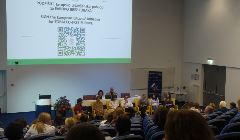V četrtek, 26. 5., se je na povabilo NIJZ šest dijakinj in dijakov udeležilo mednarodne konference o tobaku. Tia Edvarda Posel, Ela Razpet, Tadej Homar (vsi iz 3. C) ter Amina Gutić, Ana Lu Lamut in Doroteja Puš (vse iz 2. A) so nastopili na okrogli mizi, kjer so okrog sto poslušalcem orisali svoje izkušnje s tobačnimi izdelki, predstavili svoj pogled na tovrstno problematiko in odgovarjali na vprašanja, tudi v tujem jeziku. Poljanci so se izkazali s svojo odprtostjo in elokvenco, z resnicoljubnim nastopom so poslušalcem odprli oči in delili nekaj neprijetnih resnic. Organizatorji na NIJZ so nas povabili, da bi naslednje leto sodelovali še na novih tematskih konferencah, ki se dotikajo tudi zdravja mladih. Miha Pohar, prof.