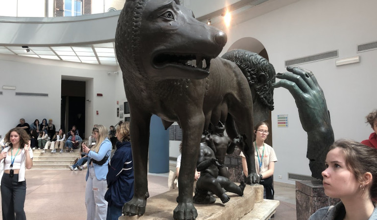 Reportaža s strokovne ekskurzije klasičnih razredov 2.A in 2.B v Rim, od 11. do 14. aprila 2023 Zunaj je bila še temna noč, ko je bil avtobus, poln zaspanih in pričakujočih obrazov dijakinj in dijakov 2.A in 2.B, že na poti proti Rimu. A na sredi poti nas je, drugače kot Danteja ali Prešerna, ustavilo mesto Mantova, kjer smo si ogledali Palazzo Ducale, cerkev Sv. Andreja in Palazzo del Te. V njih smo vstopili v renesančno umetnost, ki so jo v tedanjih italijanskih mestnih državah podpirale različne družine, v Mantovi družina Gonzaga. Navdušil nas je lik Isabelle d´Este, ki je bila očitno prava influencerka tistega časa. Po zanimivem programu smo se razveselili prve prave kave tistega dne, ki smo jo užili na skoraj toplem soncu. V očarljivi Mantovi se potem nismo več zadrževali dolgo, pripravljeni na naslednjih pet ur vožnje smo se odpravili naprej in v Rim prispeli pozno zvečer. Mesto nam je zaenkrat ostalo še skrivnost in zaspali smo v pričakovanju naslednjega dne.