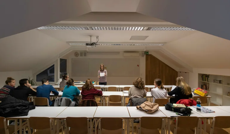 ˝Izkušnja pouka na Gimnaziji Poljane˝ Devetošolci.Vabimo vas na dneve odprtih vrat Gimnazije Poljane, ki bodo potekali:- v novembru od 17. 11. do 21. 11. 2025 in- v marcu od 9. 3. do 13. 3. 2026. Kako bo dan potekal?Na dnevu odprtih vrat je sprejem v šoli ob 8.30. Pridružite se pouku dijakov prvega, drugega ali tretjega letnika. Dijaki vas bodo pospremili v razred, kjer boste tri šolske ure prisotni pri pouku določenega razreda, spoznali boste naš vsakdan. Sledil bo pogovor s svetovalno delavko. Za obisk je potrebna predhodna prijava, število prijav je omejeno. S prijavo soglašate, da posredovane podatke uporabimo za organizacijo vašega obiska. Pred obiskom boste dobili elektronsko pošto z navodili. Kako se prijavite na obisk?- V svetovalni službi svoje osnovne šole (vas k nam prijavi vaša svetovalna delavka).- Na spletni strani Gimnazije Poljane. Prijavite se lahko na spodnjih povezavah od 8. novembra 2025 od 8.00 dalje. Prijava na dan odprtih vrat 17. 11. https://1ka.arnes.si/Prijava17November25 Prijava na dan odprtih vrat 18. 11. https://1ka.arnes.si/Prijava18November25 Prijava na dan odprtih vrat 19. 11. https://1ka.arnes.si/Prijava19November25 Prijava na dan odprtih vrat 20. 11. https://1ka.arnes.si/Prijava20November25 Prijava na dan odprtih vrat 21. 11. https://1ka.arnes.si/Prijava21November25