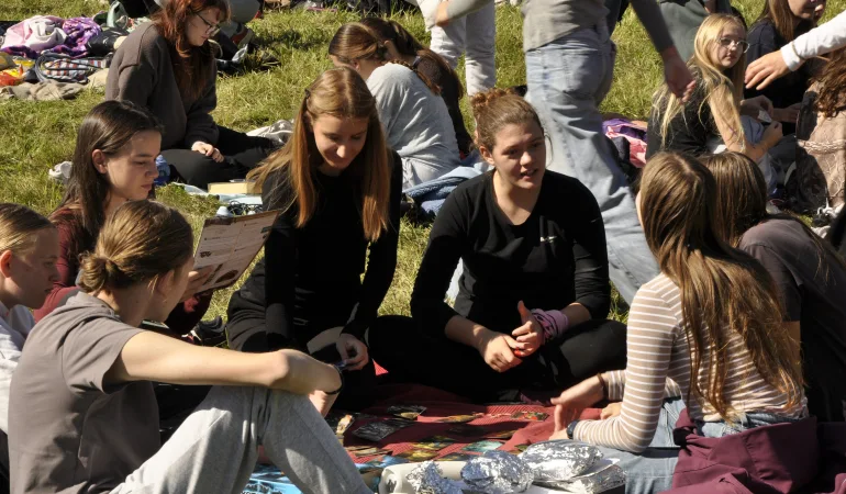 Že v drugem tednu novega šolskega leta so nas obiskali gostje iz Nemčije. Po celodnevnem potovanju, prestopanju z vlakov na avtobuse in številnih zamudah so v poznih sobotnih večernih urah končno prispeli pred Gimnazijo Poljane. Pot so opisali kot naporno in stresno, saj so njihovi vlaki zamujali tudi po dvajset minut (še dobro, da takrat še niso poznali slovenskih železnic). Nedeljo so preživeli z družinami gostiteljev. Vsak je svojemu gostu predstavil del svojega vsakdana ali ga popeljal na izlet po Sloveniji – od sprehodov po domačem kraju in skupnega kosila do spusta po ziplinu na Velikanki, paintball turnirja, vzpona na Šmarno goro in še marsičesa. Dan z družinami je minil hitro, in že je bil tu ponedeljek. Teden smo začeli z lovom na zaklad po Ljubljani. Nato je sledil tečaj slovenščine, ki je našim nemškim prijateljem povzročal še več težav kot jih nam nemščina. Po uri zabavnega lomljenja jezikov in širjenja besednega zaklada je sledilo kosilo s pico, popoldne pa predstavitev o geografskih značilnostih Slovenije. Jutranji lov po Ljubljani jim ni bil dovolj, saj so si želeli ogledati še druge kotičke Ljubljane, med njimi tudi BTC City. Tja smo se podali z mestnim avtobusom, izkušnja z LPP pa jih ni posebej navdušila. Torek smo popestrili z ekskurzijo na obalo. Najprej smo obiskali Lipico in občudovali lipicance, nato pa smo se odpravili na obalo. Čeprav nam vreme ni bilo najbolj naklonjeno, smo si vseeno privoščili sladoled, nekateri pa smo se celo kopali v morju. Na koncu nas je čakala le še dolga vožnja in zaslužen počitek. V sredo smo začeli nekoliko kasneje, kar nam je prišlo prav po dolgem dnevu. Gostom smo pokazali, kako poteka pouk, popoldne pa smo se razdelili v skupine. Nekateri so se preizkusili v sobi pobega, drugi v kvizih, vse dejavnosti pa je povezovala skupna tema – varovanje okolja. Nekateri smo dan smo zaključili z obiskom nakupovalnega središča Aleja in ogledom košarkarske tekme med Slovenijo in Nemčijo v različnih ljubljanskih lokalih. Naslednji dan nam vreme na žalost ni bilo naklonjeno, zato so naši gostje namesto raftinga na Soči obiskali Postojnsko jamo in Predjamski grad, mi pa smo dan preživeli v šoli in kasneje na Radiu Študent. V petek so bile vse misli usmerjene v priprave na zaključno prireditev. Nemške goste smo naučili zaplesati »račke« in zapeti pesem Dan ljubezni. Skupaj smo pripravili predstavitev in video, ki sta strnila vtise celotnega tedna izmenjave. Sobotno jutro je označevalo njihov odhod na slovensko obalo in tako tudi zaključek prvega dela izmenjave. Utrujeni smo se poslovili od njih z mislimi, polnimi pričakovanj na naš prihod v Nemčijo. Po enotedenskem druženju in spoznavanju naših gostov smo ugotovili, da tipični nemški stereotipi o hitri hoji in točnosti prav res ne držijo ter da so veliko bolj sproščeni, kot bi si mislili. Na koncu pa bi se radi zahvalili vsem profesorjem in profesoricam, ki so omogočili to izmenjavo, predvsem Maši Klopčič in Neži Kolbezen, seveda pa tudi našim staršem, ki so nam pomagali skozi celoten teden. Besedilo: Jakob Zakrajšek, 3.G