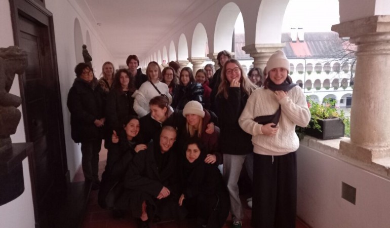 V okviru maturitetne umetnostnozgodovinske ekskurzije smo obiskali kar tri srednjeveške samostane: Stično, Pleterje in Kostanjevico. V Novem mestu smo si ogledali znamenite situle iz halštatskega obdobja, v Brežicah največjo poslikano baročno dvorano na Slovenskem, v Kostanjevici pa se vživljali v svet slovenskega slikarskega ekspresionizma. Bil je temačen in deževen dan, a smo se imeli krasno.