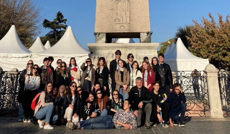 Reportaža s strokovne ekskurzije v Grčijo (od 2. do 6. novembra 2022) Pestro in nepozabno popotovanje po Grčiji smo poljanski klasiki (in dve dijakinji splošnega programa, ki sta si zasluženo osvojili naziv častnega klasika) pričeli vznemirjeni, a malce zaspani, saj smo se v poznih urah peljali vse do Milana, od koder smo ob šestih zjutraj vzleteli. Po prihodu na atensko letališče nas je z avtobusom pričakal najljubši (in edini) šofer Stavros, ki nas je odpeljal v sam center mesta, kjer je naše potovanje veličastno otvoril ogled Akropole. Kamni so bili tam tako spolzki, da bi marsikateri od nas lahko postal »a modern sacrifice«, se je pošalil naš vodič Yorgos. Sledilo je naše prvo srečanje z grško kuhinjo v obliki gyrosov, souvlakijev in musak. Nasmejani, okrepčani in polnih želodcev smo se tako odpravili v akropolinski muzej, kjer smo se z barvito razlago profesorice Nine Ostan še bolj navdušili nad čari Akropole. Na poti do našega hotela pa so nas presenetili preveliki čevlji s cofki, žabe in bela krilca - oziroma - grška straža. Drugi dan smo se že zgodaj odpravili v Arheološki nacionalni muzej, ki je zgledal malce čudno, ker smo ugotovili, da smo se v resnici znašli v Muzeju grške zgodovine. Po popravljeni napaki smo zveste oboževalke lahko končno od blizu spoznale superzvezdnika helenistične dobe Antinoosa in se z njim celo slikale. Vrhunec romantičnega doživetja tistega dne pa je bilo spremljanje sončnega zahoda s Pozejdonovega svetišča v Sounionu in branje Byronove poezije s profesorico Natašo Homar na poti nazaj do hotela. Pred tem pa nas je s kratko, a poglobljeno razlago grške zgodovine obdarila profesorica Jasmina Pavčič, ki se nam je še posebej prikupila s svojo vneto ljubeznijo do nemaloštevilnih grških mačk. Atene smo zapustili v petek zjutraj in se po krajšem postanku na korintskem prekopu napotili v starodavne Mikene, zibelko grške civilizacije. Omotični od dolge vožnje smo se Dionizu lahko poklonili v Epidavru, kjer stoji še danes mogočni amfiteater. Za dolgo pot do hotela v Tolu se nam je naš simpatični in razgledan vodič Andrej oddolžil z najboljšimi mandarinami, ki smo jih kadarkoli jedli. Tolo nas je pričakal s toplim, slanim morjem, ravno pravšnjim za večerno čofotanje, obilno večerjo in slikovitimi razgledi z balkonov v hotelu. Vodička Aristea, ki je bila med drugim navdušena nad našim impresivnim prepoznavanjem tipov grških stebrov, nas je na sončno soboto sprehodila skozi Olimpijo, prizoriščem prvih olimpijskih iger, kjer se je lahko z oljčnim vencem, prav tako kot nekoč najboljši grški atleti, okronal dijak Martin, ki je zmagal v teku na stadionu. V Delfih smo z novimi navdihi, pridobljenimi naravnost od sloveče gore Parnas, spisali svoje zadnje razglednice in za, sicer deževen, grand finale obiskali Pitijino preročišče, kjer se nam je sončni Apolon oglasil samo za kratek čas. Vožnjo do letališča v Solunu pa nam je tokrat krajšal ravnatelj gimnazije in profesor zgodovine Srečko Zgaga, ki nas je spodbudil h kritičnemu razmisleku o sodobni in grški družbi. Na poti nazaj domov so nam v glavah še dolgo odzvanjale podobe brezčasne Grčije in prijetni spomini, ki jih je ustvarila cela zasedba - od profesorjev, vodičev, voznika do navsezadnje tudi nas, dijakov . Acta est fabula. Plaudite! Julija Pavlin Vodušek in Ajda Simčič Oglejte si tudi fotozgodbo, ki jo je ustvarila Rosa Angela Romih.