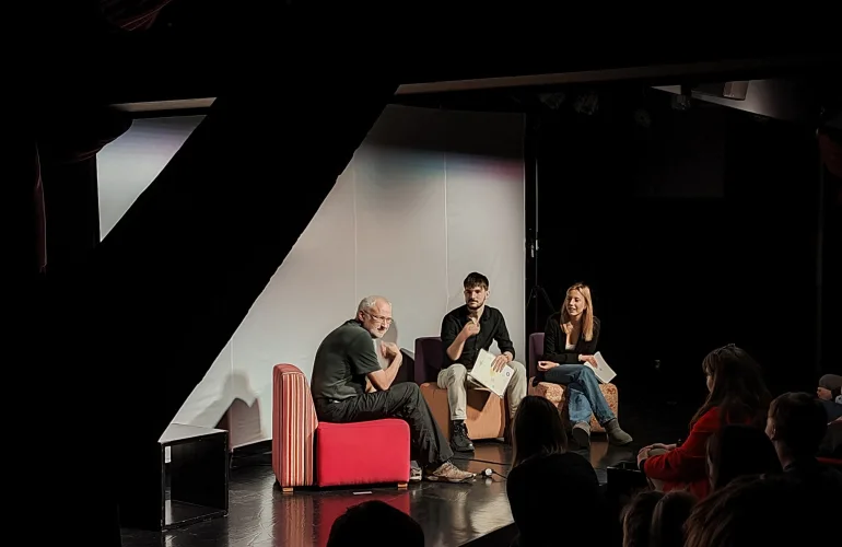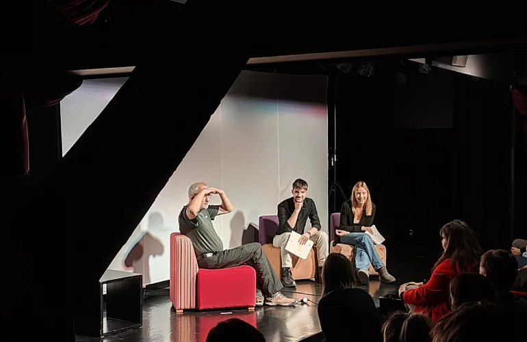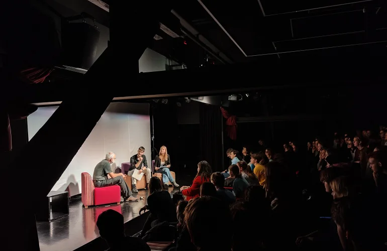 Po ogledu filma se je povezovalcema Tjaši Železen ter Aljažu Prazniku pridružil na odru še režiser filma Miran Zupanič. Pri odgovarjanju na vprašanja, mnoga tudi provokativne narave, ni bil niti malo zadržan. Dijake je popeljal skozi nastanek filma, govoril o tem, kako je sam izvedel za dogajanje, ki naj bi se odvijalo med vojno v Bosni in Hercegovini, ter odkril, kako ga je pot pripeljala do pričevalcev in očividcev tega početja.