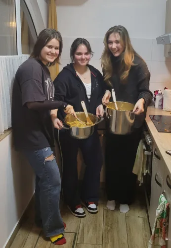 Dekleta so pripravila omako za testenine, ki so se kuhale v drzgem apartmaju.