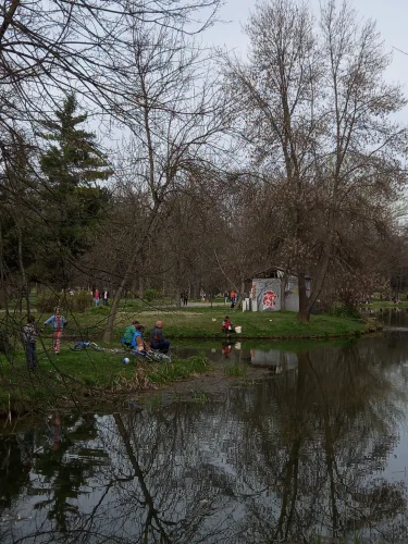 Ribiči v parku v Skopju.