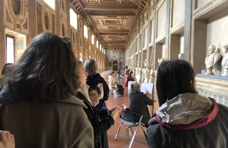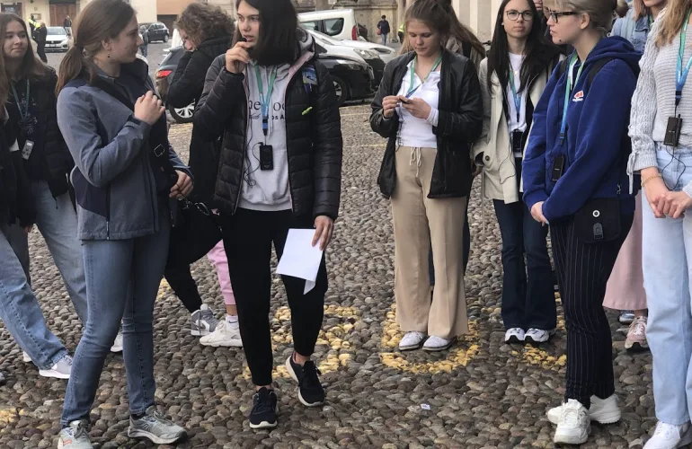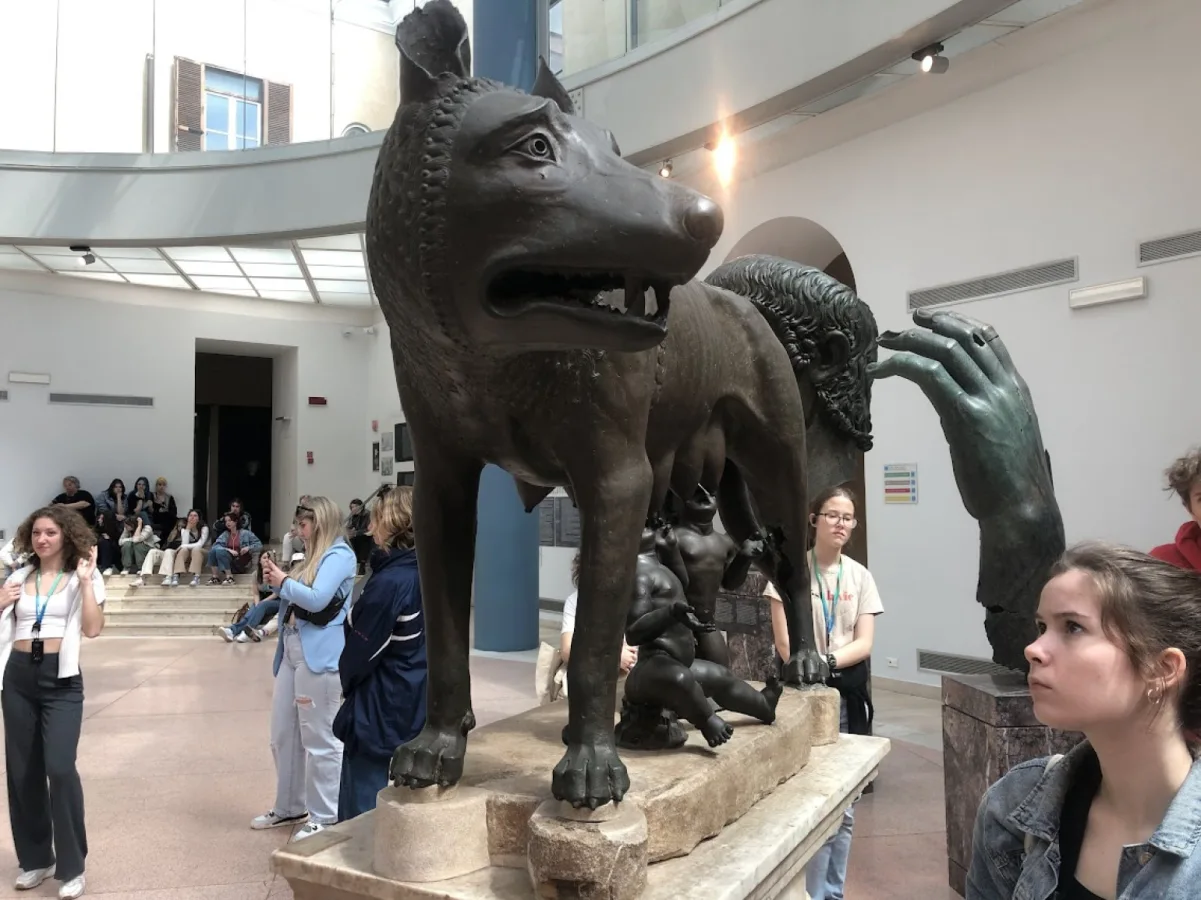 Zunaj je bila še temna noč, ko je bil avtobus, poln zaspanih in pričakujočih obrazov dijakinj in dijakov 2.A in 2.B, že na poti proti Rimu. A na sredi poti nas je, drugače kot Danteja ali Prešerna, ustavilo mesto Mantova, kjer smo si ogledali Palazzo Ducale, cerkev Sv. Andreja in Palazzo del Te. V njih smo vstopili v renesančno umetnost, ki so jo v tedanjih italijanskih mestnih državah podpirale različne družine, v Mantovi družina Gonzaga. Navdušil nas je lik Isabelle d´Este, ki je bila očitno prava influencerka tistega časa. Po zanimivem programu smo se razveselili prve prave kave tistega dne, ki smo jo užili na skoraj toplem soncu. V očarljivi Mantovi se potem nismo več zadrževali dolgo, pripravljeni na naslednjih pet ur vožnje smo se odpravili naprej in v Rim prispeli pozno zvečer. Mesto nam je zaenkrat ostalo še skrivnost in zaspali smo v pričakovanju naslednjega dne.