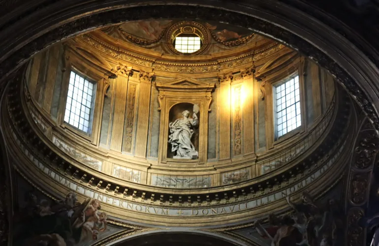 Ko se je zunaj ponudila priložnost, da si ogledamo še zadnjega Berninija, ni bilo izgovora, da bi ponudbo zavrnila, čeprav sem se resno bala, da bom potem preveč presunjena, čakala pa nas je še dolga pot domov. Drugim je zbranost, kolikor je je bilo, popuščala, in tako se nas je nabralo skromnih osem, ki smo bili pripravljeni brž steči do metroja in se odpeljati do cerkve Santa Maria Della Vittoria. Tam nas je, dramatične, kakršni smo bili, čakal še bolj teatralen prizor. Menda sem bila jaz tista, ki je prva dvignila roko in s tem spodbudila skupino prijateljic, da gredo še one z menoj. Zato sem medtem, ko sem se izredno zabavala v našem skoraj noroglavem hitenju, obenem vsa streznjena ozirala po njih in jih preštevala, ali smo še vse na kupu. Ah, napetost čuvaja, ki sam beži pred redom!