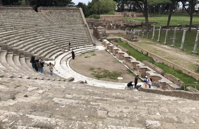 Jutro naslednjega dne nas je pozdravilo s sivimi oblaki na nebi, na urniku pa je bil izlet do Ostie, ki se je izkazala za najljubšo destinacijo mnogih. Samostojno raziskovanje ruševin mesta nam je omogočilo stik z antiko, na koncu pa smo se vsi našli v kavarni, skupaj posedeli še nekaj časa in se vrnili v Rim. Vreme se je takrat že poslabšalo in pred dežjem smo se skrili v Musseo Massimo in našli zatočišče med čudovitimi kipi in freskami. Sprehajali smo se med umetninami, videli Boksarja, cesarja Avgusta, kipe božanstev in se na koncu znašli v čudovitem zimskem vrtu, poslikanem z vrtom, polnim sadnih dreves, cvetlic in ptic. Po muzeju nas je pot odpeljala še do cerkve Santa Maria Della Vittoria in Fontane di Trevi. Ob tej smo si vzeli toliko časa, da smo si z metom kovanca zagotovili uresničitev želja. Na poti do večerje smo šli še mimo Španskih stopnic in Angelskega gradu ter ob tem po slušalkah vestno poslušali vodičko, nazadnje pa ponovili večerni program prejšnjega dne.