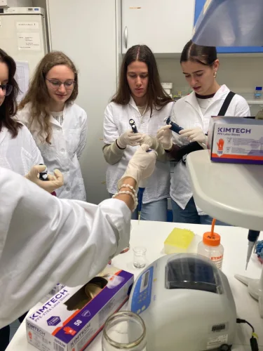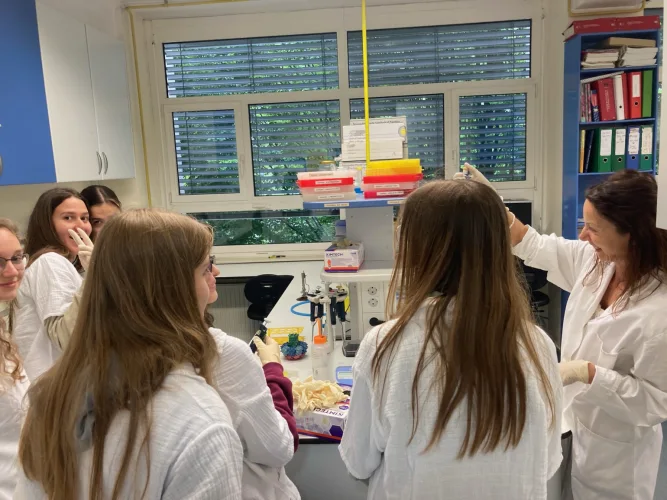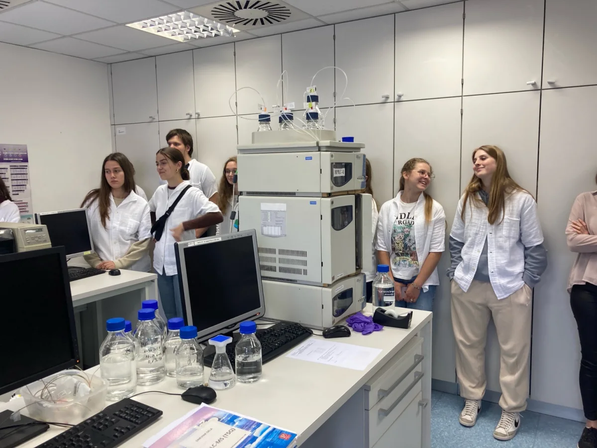 NazajZ manjšo skupino dijakov in dijakinj izbirnih oddelkov kemije smo si 5. 6. popoldne ogledali dva izmed mnogih delov tega raziskovalnega "paradnega konja" Slovenije: in sicer biokemijski del in del, ki se ukvarja s prehrano.