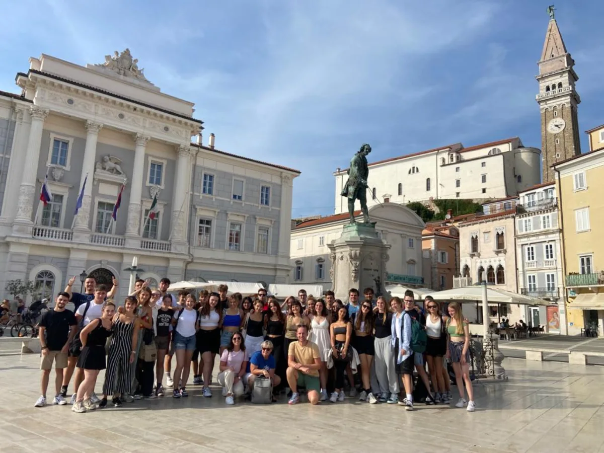 Splošno znano je, da je na vsaki izmenjavi »nek pripetljaj«, pa tudi če ga ni, je sama po sebi utrujajoča, saj gost za teden dobi vpogled v življenje gostitelja, ki je stalno v pogonu, da dijaku na izmenjavi omogoči brezskrben in zanimiv obisk. Naši gostje so bili sprva nekoliko zadržani, a se mi zdi, da smo se do konca tedna drug na drugega dodobra navadili. Sprostili smo se tudi na torkovi celodnevni ekskurziji v Piranskih solinah, Piranu in Portorožu. Slovenska obala se mi zdi ena izmed lepših in bolj razbremenjujočih pokrajinskih enot Slovenije, ki jih turist med raziskovanjem naše zelene dežele ne sme izpustiti. Muzej piranske zgodovine, razgledi pri zvoniku cerkve sv. Jurija, skupinsko fotografiranje na Tartinijevem trgu, plavanje na portoroški plaži, nujen obisk portoroškega bara Cacao ter preprosto potikanje po mestu so nam zapolnili zgodnje popoldne. Isti večer je naš razred najel lovsko kočo na Dolgem mostu, da smo se vsi skupaj podružili tudi izvenšolsko. Naslednje jutro smo imeli čas, da smo se naspali, saj smo z rednim poukom pričeli šele 5. uro. Nemci so imeli ta čas priložnost spremljati, kako pri nas potekajo šolske ure.