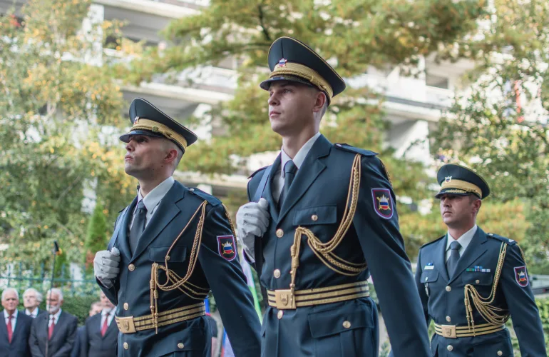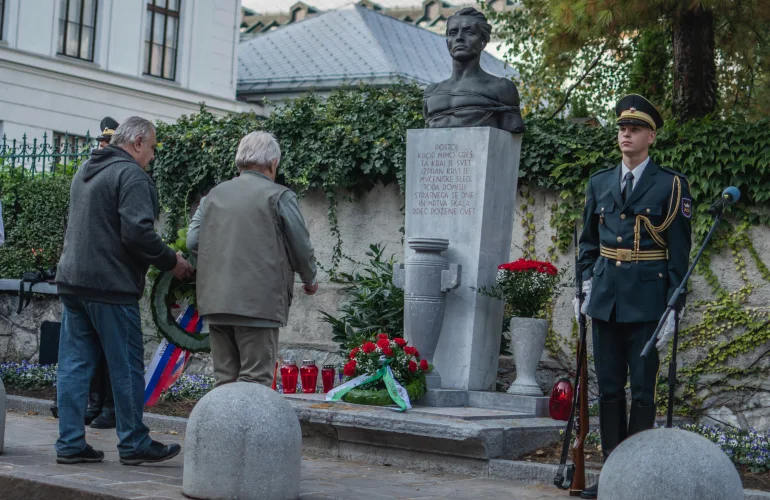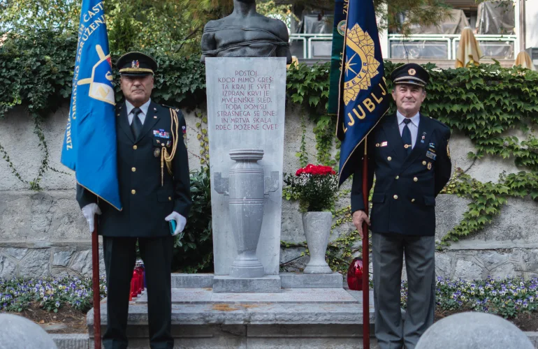 Da se je to slišalo daleč in še dlje ter da je prireditev zaživela v vsej svoji mogočnosti, so poskrbeli Kvintet trobil Slovenske policije, Častna straža Slovenske vojske, praporščaki Združenja borcev, Partizanski pevski zbor, dijaka Gimnazije Poljane, Ema Erna Weber in Luka More, slavnostna govorca, župan Zoran Janković in predsednik Združenja borcev za vrednote NOB Ljubljana Center, Mihael Grobelnik. Nad vsem sem bedela pa kar sama, tako kot že 27 let poprej.