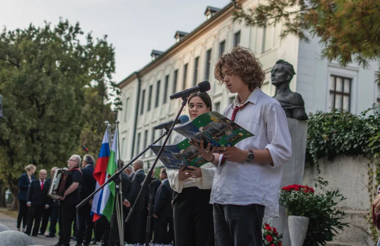 Nazaj13. oktobra 2023 smo se na Ulici talcev ponovno zbrali pred spomenikom 24 talcev, ki so se med 2. svetovno vojno žrtvovali za to, da danes lahko živimo v svobodi in uporabljamo naš - slovenski - jezik. Bili so žrtve mučenja, gladu, stenic, ledenih besed …