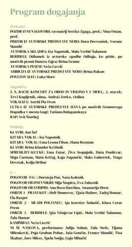 Posebna zahvala gre tudi ustvarjalcem današnjega programa, Katarini Torkar Papež, Vidu Skrbinšku in množici dijakov.