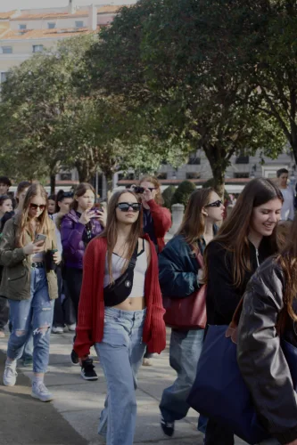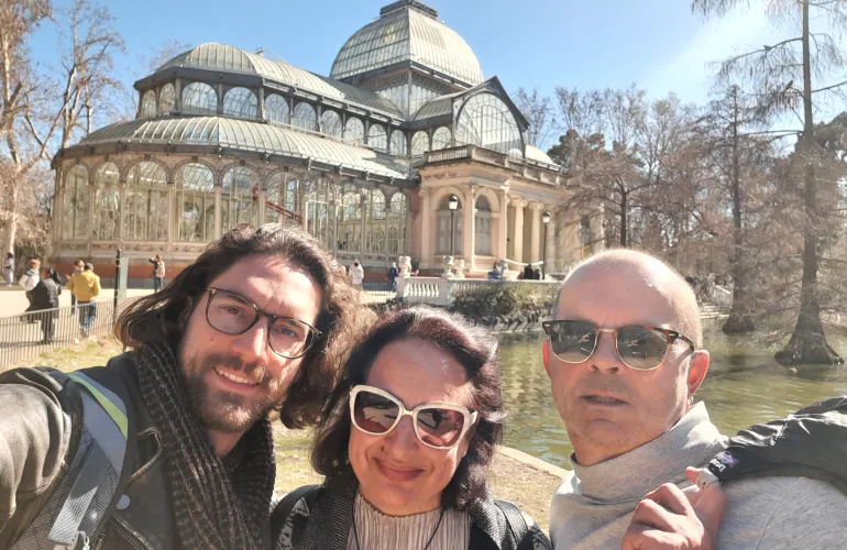 NazajV soboto, 17. februarja 2024, smo se ob 6.30 na parkirišču Streliške ulice zbrali navdušeni učenci in trije cenjeni profesorji Gimnazije Poljane. Poslovili smo se od staršev, se vkrcali na avtobus in odpravili na dolgo pričakovano pot proti letališču v Benetkah. Kljub še rahli zaspanosti je avtobus brnel od živahnih pogovorov. Med potjo je naš vodič, Tilen Gabrovšek, pripovedoval zgodbe o bližnjih pokrajinah in slikal žive portrete sveta zunaj naših oken. Med njegovimi pripovedmi se je pojavilo nenavadno razkritje – naš voznik, Franc Grčar, je vozil avtobus znamke Gerčar, čeprav sam ni bil lastnik. Čez približno dve uri, ki sta se nam zdeli kot dve minuti, smo prispeli do letališča Marco Polo v Benetkah. Po slovesu od voznika Franca nam je Tilen pri vhodu razdelil karte. Ob 12.05, z rahlo zamudo zaradi megle, smo se dvignili v prostrano nebo. Za nekatere je bila to nova izkušnja, drugi pa smo ta občutek že poznali. Po dobrih dveh urah nas je na letališču Barajas objela nežna toplina Madrida. Medtem ko smo čakali, da se vsi zberemo, so nekateri izkoristili to priložnost, da so obiskali paralelni svet komore čudes (WC), ostali pa smo si napolnili plastenke z vodo. Na naše razočaranje je okus madridske vode vseboval grenko resnico – vseprisoten pridih klora. Vsekakor pa se naša zgodba ni končala tu!