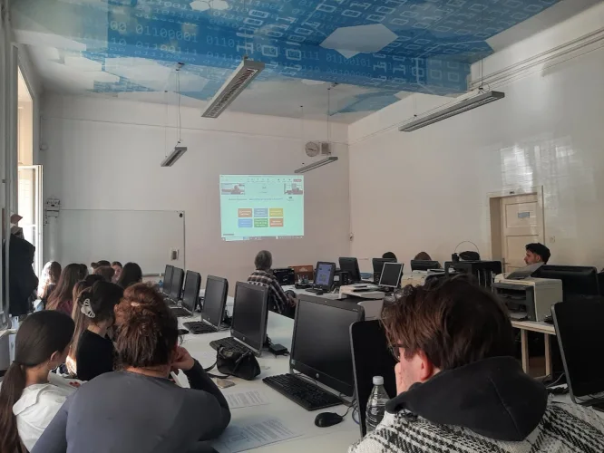 Sodelujoča učitelja: Natali Žlajpah, prof. španščine, in Boštjan Žnidaršič, prof. informatike