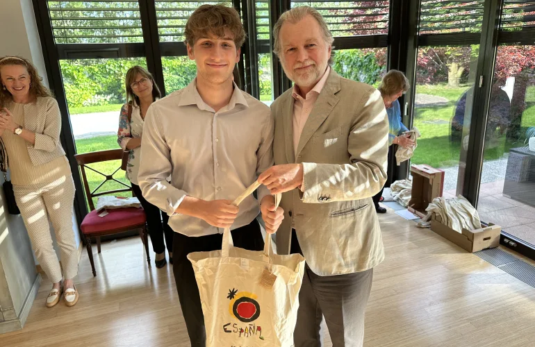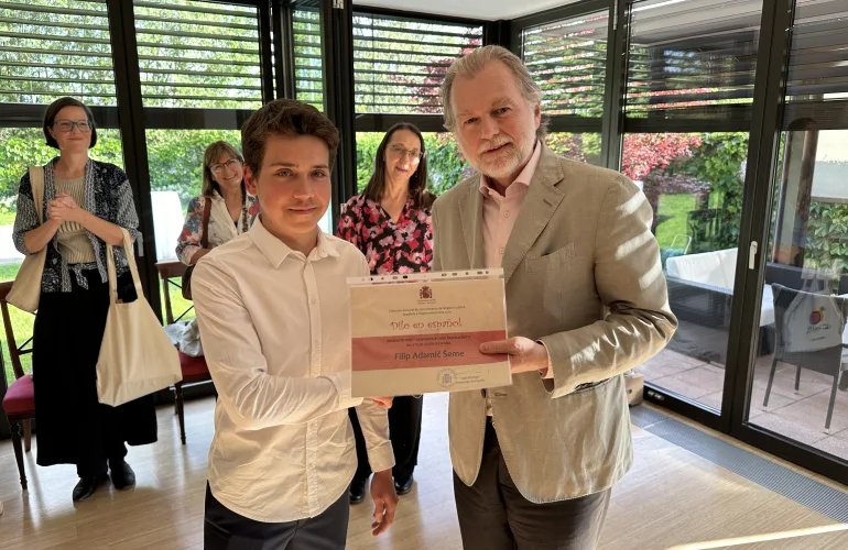 Sprejem prejemnikov zlatega priznanja pri španskem veleposlaniku - nagrada za 1. mesto med 4. letniki Filip Adamič Šeme