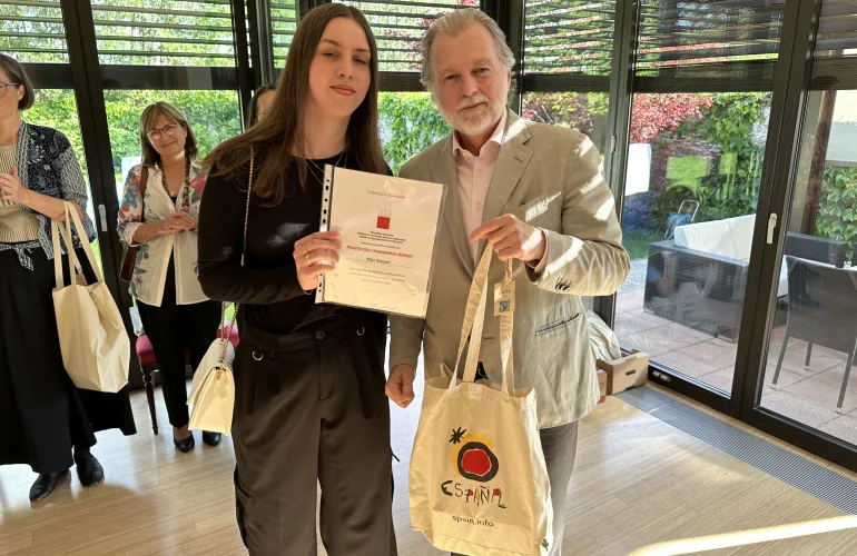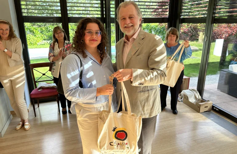 Veleposlanik Španije, Njegova Ekscelenca Juan Arístegui Laborde in predesdnica Slovenskega društva učiteljev španščine Pavlinka Korošec Kocmur, sta počastila zlate nagrajence v državi s sprejemom v španski rezidenci 29. maja 2024 in s tem tekmovalcem izkazala veliko čast in jih še naprej spodbudila k učenju in širjenju španske in latinskoameriške kulture.