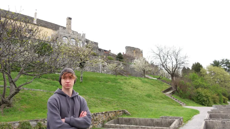 Izpred Poljan v Ljubljani so nas vijugaste ceste vodile vse do prostranih kraških pokrajin, kjer se za našteto griči skriva Štanjel. Slikovite podobe vasice z znamenitim Ferarijevim vrtom ter zgodbo Maksa Fabianija so nas spremljale vso pot do naše naslednje postojanke. Oster veter nas je namreč kmalu odpihnil vse do Tomaja. Občasno nas je poškropila kakšna osamljena dežna kaplja, pred katero smo se skrili kar v rojstno hišo Srečka Kosovela. Spomini na sprehod skozi njegovo življenje pa se nam bodo nedvomno pričarali že ob misli na, več kot le zlata vredne, melodije, ki sta jih izpod klavirskih tipk izvabila naša sošolca Jon in Oskar. Glave smo ta dan pomolili še v Muzej slovenskih filmskih igralcev, kjer nas je poliglot Kekec, čigar film je bil preveden v marsikateri jezik, pozdravil kar v pismenkah. Pot (morda v resnici le kruleči trebuh) nas je na kratek obed vodila še v Sežano, saj smo po tako pestrem dnevu kar pozabili na hrano. Tako hladen zgodnje-spomladanski dan smo seveda morali zaključiti v slogu, četudi nekoliko skregani z muhastim vremenom. Na veliko začudenje razrednika in številnih mimoidočih smo brez skrbi, (in skoraj brez prekrvavljenih prstov na nogah), zaplavali v morju. Morska osvežitev s (po ocenah strokovnjakov za temperaturo vode in primerjalno književnost) prijetnimi dvanajstimi stopinjami in pol, pa začuda ni mikala drugih večernih obiskovalcev Izole.