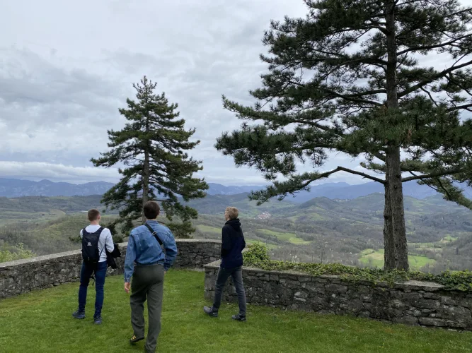 Ob 13.30 nas je na Sabotinu pričakal g. Bogdan in nas v svojem slogu popeljal po kavernah. Nadaljevali smo z ogledom Šmartna in degustacijo oljčnega olja. Za zaključek dneva smo se povzpeli na stolp v Gonjačah.
