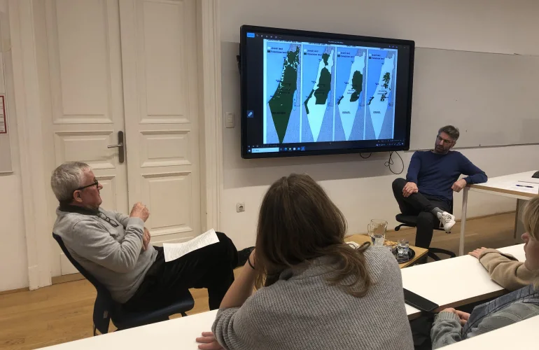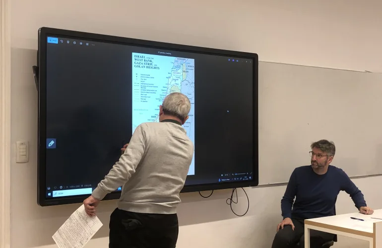 Obogateni s slikovnim gradivom in pronicljivimi zgodbami iz prve roke smo dobili vpogled v kompleksnost tega pomembnega svetovnega političnega vprašanja, hkrati pa sta nam tako intervjuvanec kot naš profesor vsaj malo odstrla tudi pogled v vsakdanje življenje na tem kriznem žarišču.