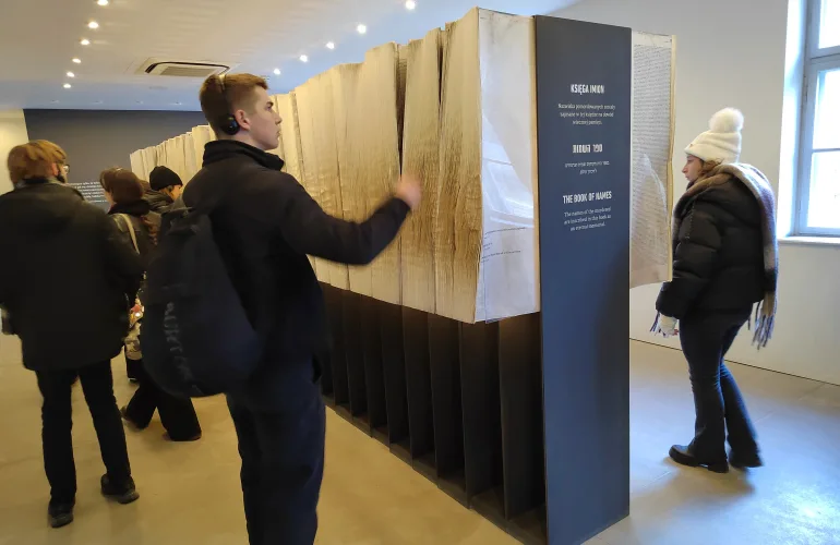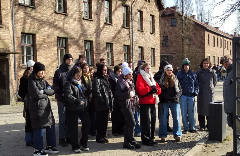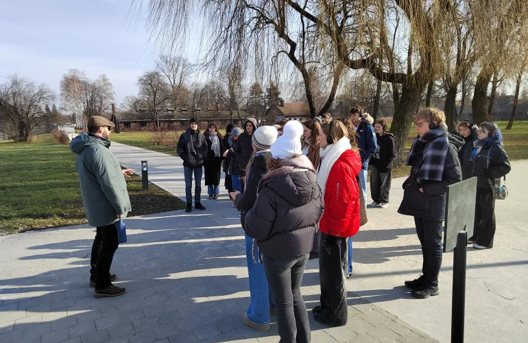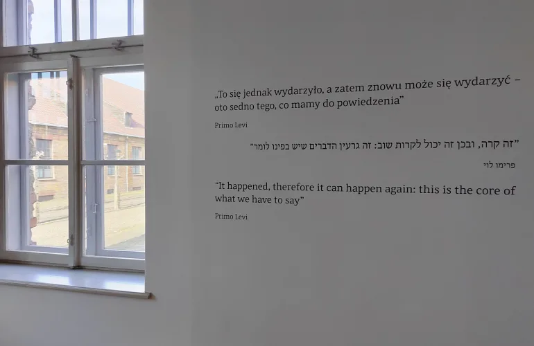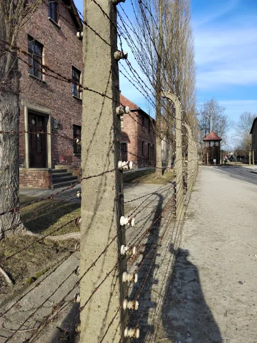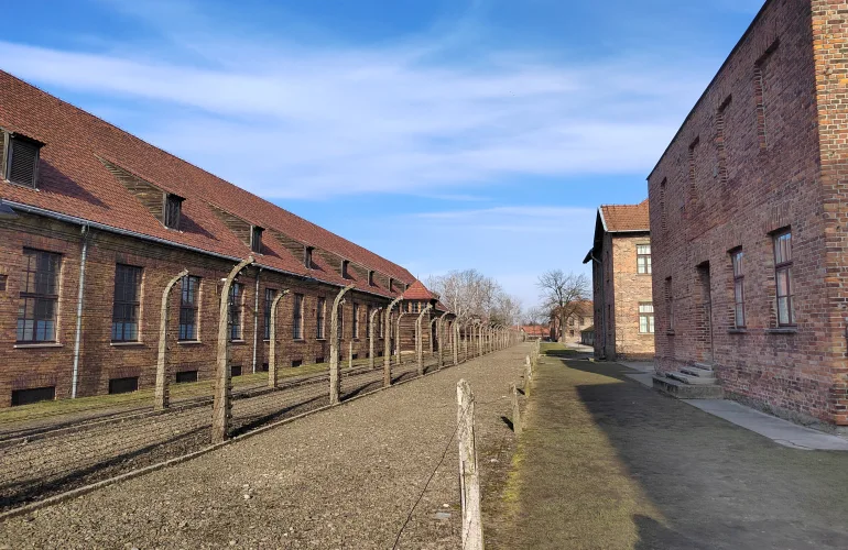 NazajVeš, kam greš, ko se voziš mimo golih, koščenih dreves, ki se dvigajo visoko v sivo nebo. Stopiš skozi vrata muzeja in čutiš, kje si. Oster hladen veter, ki veje mimo vogalov barak, te opominja, kdo je tu bil in ni nikoli odšel.