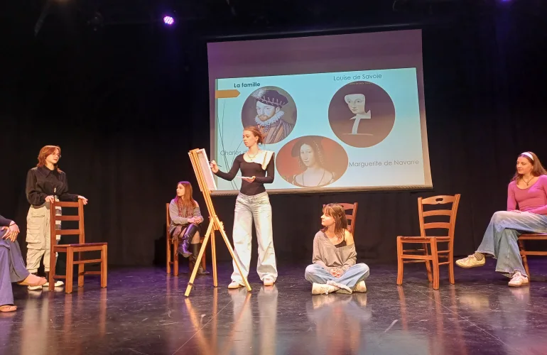 Nazaj20. marca 2025 so dijakinje 2.a (Pia, Janja, Lara F., Livija, Lara K., Špela, Ela, Gaja, Iva, Laura, Lizzie in Zala) na Gimnaziji Nova Gorica predstavile francoskega kralja Franca Prvega in obdobje renesanse. Rdeča nit celotne prireditve, kjer so se predstavili francosko učeči se gimnazijci iz vse Slovenije, so bili francoski kralji in kraljice. Zato smo dan zaključili z obiskom Kostanjevice in ogledom knjižnice ter zadnjega počivališča kralja Karla X. in njegovih najbližjih.