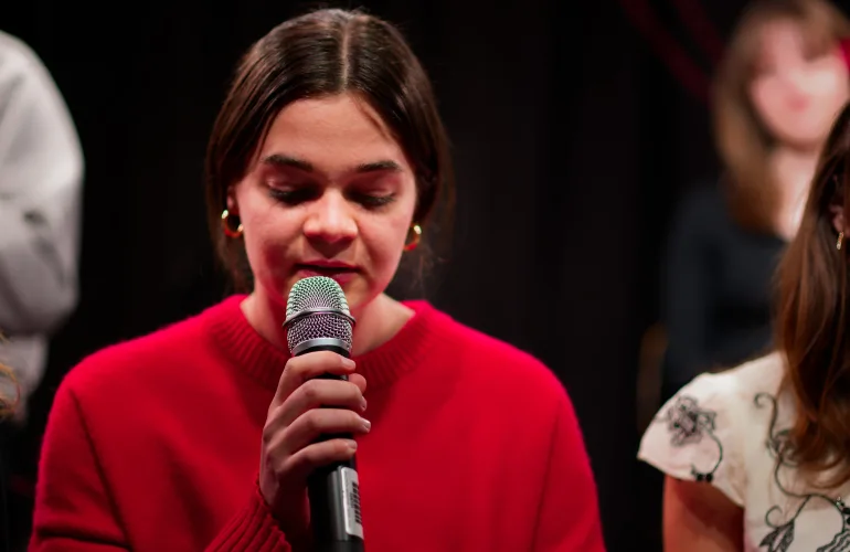 Pozne marčevske dni že na prvi pogled prepletajo poganjki rim, odpirajo se popki cvetočih verzov, ptice že radostno stopicljajo mimo stopic dehteče poezije. Kot nalašč, se je letos še svetovni dan poezije ugnezdil ravno na 21. marec. Kdor se je torej na predvečer slednjega, na naključno izbrani četrtkov večer, povzpel vse do višav, da bi dosegel dvorano gorskega kralja — večera, ki si je 20. 3. nadel še pridevnik literarni, se je le stežka izgubil. Poti potniku niso kazale kričeče markacije, niti navkreber hodeči kažipoti, marveč nit rdeče barve. Vrh sedmih stopnišč, za voglom sedmih šolskih ur, ki jih dnevno prebijemo pod gorskim sedlom podstrešja, se je za črnimi zavesami poljanske dvorane razpletala ideja, ki je dišala po barvi češenj, makovih cvetov in krvavečega srca. Na statvah dijakov, ki ustvarjajo predvsem v okviru šolskih literarnih zbornikov in urednicah le-teh, se je po dolgem času zopet spletel literarni večer. Za rdečo nit dogodka, smo v šivanko vdeli kar rdečo nit.