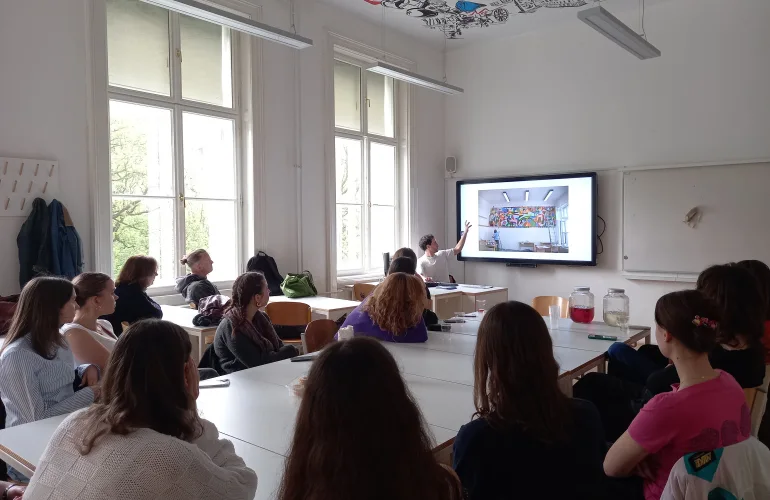 Zgolj z iskrivim pogledom je bilo v preprosti učilnici moč zapaziti zasneženo pocukrane marelične piškotke ter žive limete, ki so se utapljale v kozarcih kričeče rožnatega malinovca. Kot je namreč omenil tudi naš gost sam, se navdih lahko išče prav na vsakem koraku, z idejo v mislih, da je meja med kovencionalno lepimi in grdimi stvarmi izrazito tanka. Jasna pa je tista, ki skrbi, da ohranjamo stik z bližnjimi, ustvarjamo skupaj — iščemo talente v ljudeh, ki nas obdajajo, pa bomo marsikaj lažje našli. Izgubiti se je v kopici kreativnega nereda seveda lahko, a kaj ko lahko sami ustvarimo tudi svoje kažipote.