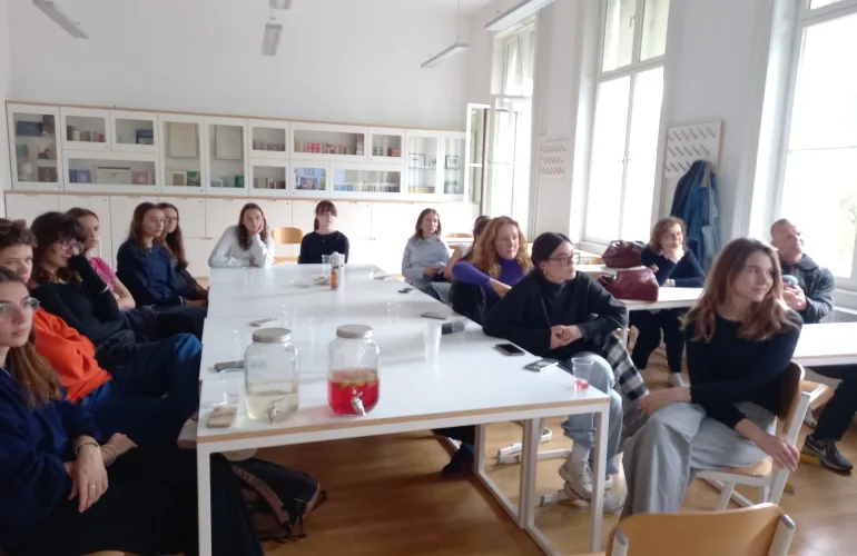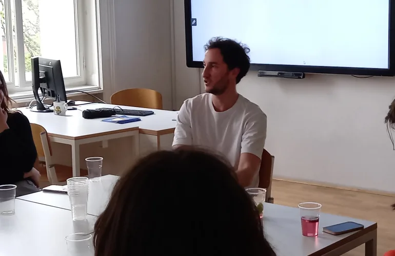 NazajGalerija G+ in uredništvo revije Pravi kot sta 17. aprila na šoli v pogovoru gostila nekdanjega poljanca, uspešnega in vizualno prepoznavnega grafičnega oblikovalca Nejca Praha.