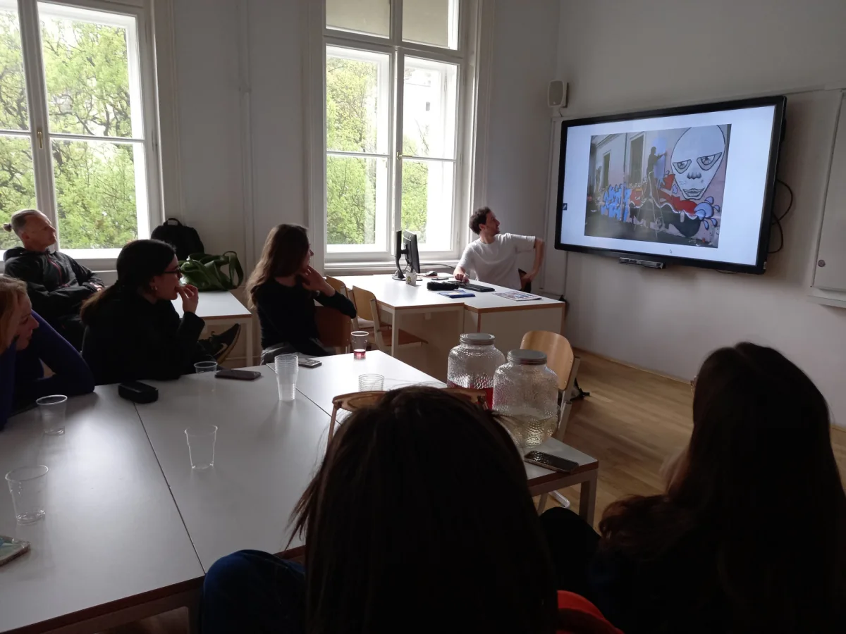 Predstavil je svojo ustvarjalno pot, idejna in vizualna izhodišča svojih številnih zelo uspešnih projektov (npr. celostna grafična podoba Centra Rog, celostna podoba 33. grafičnega bienala Ljubljana …) ter dekleta opogumil pri njihovem ustvarjanju - tako revije Pravi kot kot tudi ostalih vizualnih komunikacij.