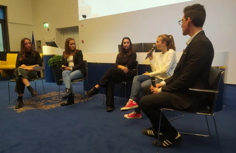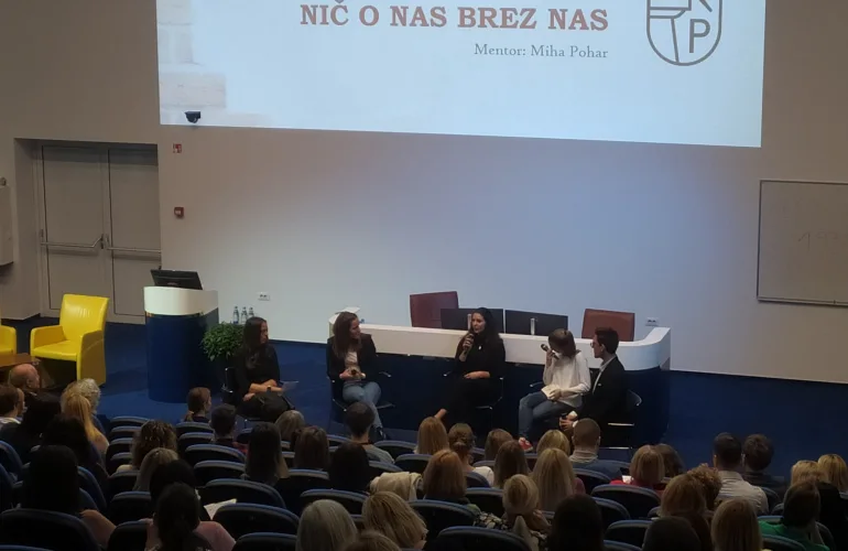 Nazaj11. 2022 je v prostorih Zdravniške zbornice Slovenije v Ljubljani v organizaciji Nacionalnega inštituta za javno zdravje potekala konferenca z naslovom Kaj družba daje mladim? Konferenca je bila namenjena zdravnikom, pedagogom in socialnim delavcem iz cele Slovenije, kot posebni gostje so bili nanjo povabljeni tudi dijaki Gimnazije Poljane Nina Brugger, Brina Gramc, Ruben Košuta, Pija Pust in Tara Rubinić (vsi 4. A).