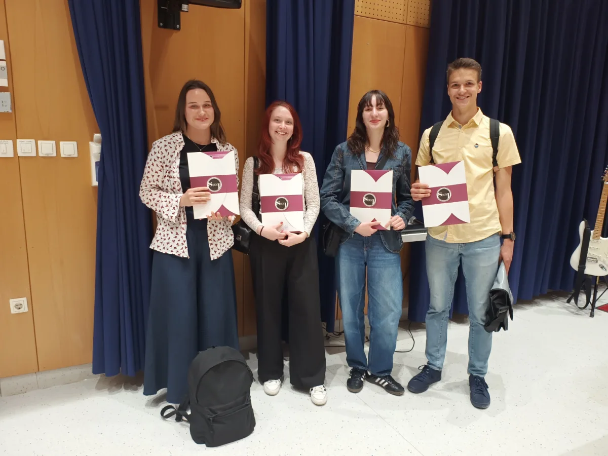 NazajV torek, 20. maja je na Gimnaziji Lava v Celju potekala svečana podelitev zlatih priznanj iz znanja nemščine, ki so se jo udeležili tudi naši odlični dijaki: Luka Gradišek, Amila Pivač, Eva Knavs in Daša Ponikvar.