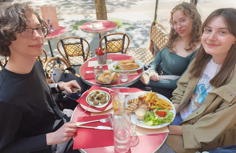Ko smo prišli iz muzeja, smo se sprehodili skozi krasen park Tuileries in se peljali s podzemno železnico do našega naslednjega postanka – slovite Galerie Lafayette in kosila. Nekatere dijakinje in dijaki so poskusili les escargots, polže, znamenito francosko jed.