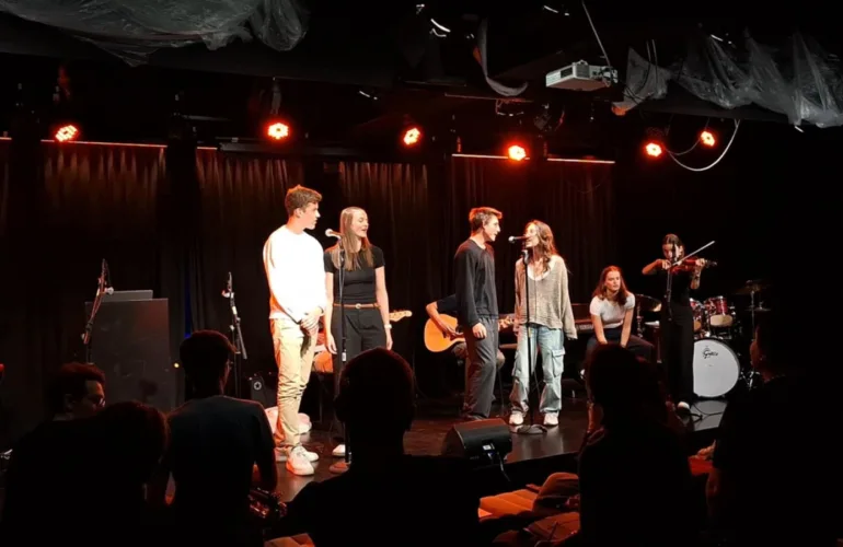 Petkov dopoldan smo, pod krinko priprav na zaključno predstavitev, prevedrili razpršeni vsak na svojem koncu šole (ali blizu nje, na primerni varnostni razdalji). Prav vsakega izmed nas je slej kot prej premamila misel na odprto kuhinjo, katere hrana je navdušila celo brbončice naših kulinarično dobro podkovanih gostov. Delovni, a ob enem razburljivi teden smo uradno zaključili najbližje nebu, kakor smo na Poljanah le lahko. Šolsko dvorano so, ob spremljavi glasbenih vložkov Hišnega benda, znova zajeli utrinki naših dotedanjih dogodivščin. Spomin nanje smo osvežili s pomočjo kviza o celotni slovensko-makedonski navezi, v naših srcih pa ga bomo za vselej ohranjali z mislijo na melodije glasbene točke, katerim smo se ob koncu večera prepustili.
