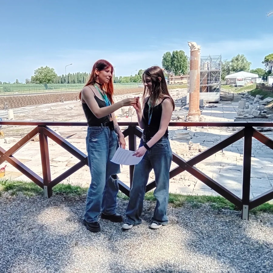 NazajKlasična 1.A in 1.B sta se ob zaključku šolskega leta odpravila na strokovno ekskurzijo v Akvilejo. Dijaki so si natančno ogledali rimsko rečno pristanišče, stopili na forum, srce antičnega mesta, se odsprehodili po dekumanu, eni od glavnih ulic, in izven mesta obiskali nekropolo, rimsko pokopališče. Nato so vstopili v hišo bogatega rimskega trgovca Tita Makra: ogromna hiša z mnogimi sobami, atrijem in impluvijem na sredi ter vrtom! Žal so že pred našim prihodom odkrili skrit kupček kovancev, ki jih je rimski gospodar zakopal za težke čase! Nazadnje so si dijaki ogledali še izjemne mozaike v cerkvenih dvoranah, ki prinašajo nove motive prvih kristjanov, ki so tedaj šele iskali svoj umetniški izraz. Ob raziskovanju Akvileje, ki je bila nekoč izredno pomembna tudi za našo Emono, smo lahko prisluhnili dialogom dijakov, ki so se vživeli v življenje Rimljanov in nam ga predstavili skozi svoje oči. Zelo zanimivo!