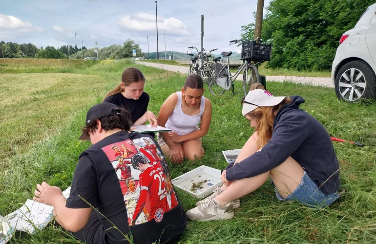 NazajTudi letos so dijaki prvih letnikov, tokrat 17. in 18. junija 2025, raziskovali, kako kemijski in fizikalni dejavniki vplivajo na življenje v potoku Glinščica in kako pestro je življenje na okoliških travnikih. Izmerili so hitrost vode, globino potoka in izračunali njegov pretok, pH, ugotavljali so vsebnost različnih mineralov in onesnaženost z nitriti in nitrati. Popisali so živali in rastline v potoku in s kečerjem lovili žuželke po travniku. Nabrali so tipične travniške rastline in jih določili s pomočjo slikovnih rastlinskih ključev. Z metodami proučevanja živih in neživih dejavnikov so se srečali prvič in bili so presenečeni, koliko različnih vrst živi v naši neposredni okolici in kako močno neživi dejavniki vplivajo na življenje.
